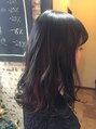 ダークアッシュカラーの中にチラッと見えるパープルのポイントカラーが可愛いです(^^)コントラストをしっかり出すことでしっかりとポイントカラーを引き立たせれますよ!