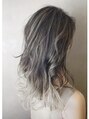 少し目立つハイライトを入れて毛先もブリーチでぼかしました♪ケアブリーチでハイライト部分、毛先を2回しています☆髪の状態によりますが、健康毛の場合は2回必須です!