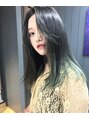 暗めのベースにアイスミントグリーンのストライプハイライトがすごく印象的ぱつっと切りっぱなしのカットが相性抜群!ハイライトはベージュに褪色するので、褪色後もカラーの変化を楽しめるヘアデザインです!