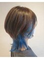 前髪もこめかみ下も襟足も全部ブルー!!! 表面はダークカラーで落ち着かせて、人とかぶらないお洒落なスタイルの完成です(*^^*)☆