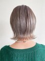長めの前下がりボブです。ブリーチは何度も繰り返してるベースの髪の毛にベージュ系のカラー剤で透明感を出しました!セットはストレートアイロンで外に跳ねさせるだけなので楽ちんです!!