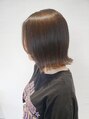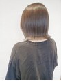 カジュアル可愛いパツッとボブ☆ 外ハネセットでボリュームダウンにみせて小顔効果に☆ カラーは流行りのオイルグロスカラーでグレージュにお仕上げ(*^^*)★