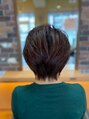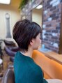 - 明るめのグレーカラーにアレンジの効く大人ショートスタイル。