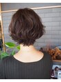 秋色カラーにバッサリショートボブ。秋冬はストールやマフラー、ハイネックの服が増えてくるので首元スッキリヘアもオススメです。