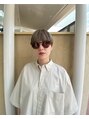 短めのマッシュショート。丸さは残し女性らしさを。ケアブリーチでダメージを抑え、グレーでオンカラー。カラーにインパクトがあるのでスタイリングは質感を与える程度で。