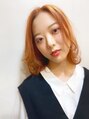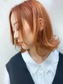 柔らいピンクオレンジと切りっぱなしボブがガーリーなかわいさを演出☆ダブルカラーでベースの色味を削ることでクリア感up!外ハネベースのスタイリングがおすすめです^ ^