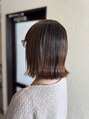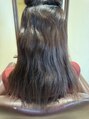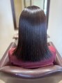 髪のうねりと膨らみを縮毛矯正でしっかりと取り、サラサラで指通りの良い質感にしました。カラーリングは髪に負担がかからないよう、根本を染めて仕上げました。