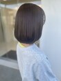 扱いやすいボブスタイルに、自然なショコラブラウンをオン。黄色味を抑えた落ち着きのある色味で、ツヤ感たっぷりに仕上げました。毎日のお手入れもラクで、柔らかく女性らしい印象に。