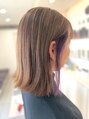 柔らかいナチュラルベージュのベースに、チラッと見えるパープルのインナーカラー耳にかけたときや動いたときにだけ見える、計算された“さりげなさ”がポイント。ナチュラル派さんでも挑戦しやすいインナーカラー。ストレートでも巻きスタイルでも◎