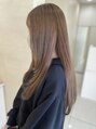顔周りにレイヤーを入れて柔らかい動きを出したロングスタイル。赤みを抑えた明るめベージュカラーで透明感とツヤ感をプラス。ストレートでも毛先に自然な動きが出て、軽やかで女性らしい印象に仕上げました。扱いやすくナチュラルに決まるのも魅力です。