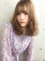 肩下で揺れるカールのミディアムヘア。どんな方でも合わせやすくどんな方からも愛されるスタイル。カラーはヘルシーベージュを合わせて、柔らかさと透明感をアップ。