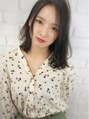 内側は外ハネに巻いて、表面は内巻きに巻いた柔らかい質感を出したシンプルな大人可愛いスタイルです。カラーは暗めのグレー系のカラーで、透明感を♪