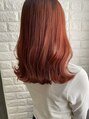オレンジカラー。毛先にはブリーチ歴があり、根元と差が出過ぎないようカラーリングしてます。