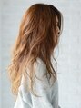 ランダムなウェーブが、カジュアルコーデにぴったりの、脱力感ロングウェーブ。かきあげた前髪でラフな中にセクシーさをプラス。髪をサイドに寄せたことで顔周りをすっきり見せた小顔にも見せられるスタイルです。