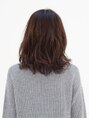 毛先中心に動きをつけ、顔型補正効果のあるパーマスタイル。丸顔やエラが気になる方も、自然にカバーします。ダークトーンのアッシュ系カラーに細かくハイライトを入れ、光が当たった時の透明感・抜け感を演出。