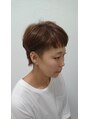 左サイドにインナーオレンジ、右サイドは6mmのツーブロックを入れた個性的でオシャレなアシメショートスタイル。
