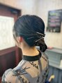 - 結婚式のお呼ばれヘアセットダウンスタイルのシンプルシニヨンで、少しアレンジをきかせてます!