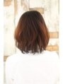 肩上レングスのボブ。トップセクションのみにレイヤーを入れて動きを出しているのでパサツキ感を抑えつつ動きが出せます。