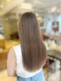 ブリーチ2回から作るミルクティベージュ◎ほんのりグレージュのお色味加えることで色落ちしても可愛いカラー作ってます☆重ためのぱっつん前髪との相性もばっちりです◎