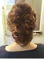 後ろに大きくざっくりと編み込みを入れて毛先を散らしたシニヨンです♪ブライダルシーンにぴったりの王道シニヨンきれいめスタイル☆どこからみても上品で華やかですよ☆
