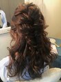 後ろに大きく編み込みを入れたウェーブハーフアップです。ゆったりとしたカジュアルセットですが後ろの編み込みがインパクトがあり飾りがなくても華やかに(*^^*)