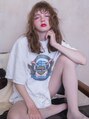 造りこみ過ぎてない、程よくルーズな外国人風大人カジュアルスタイル☆トレンドの細かめウェーブにウェットなスタイリングで♪カラーは赤味のない外国人風ヌーディーベージュで透け感をプラス。