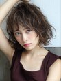 かっこかわいい外国人風ボブスタイル☆少し強めのカールとウエットな質感がかっこよくも可愛い雰囲気に◎カラーは透明感がイケてるブルージュカラー。