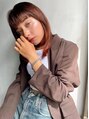 顔まわりの作り込みを大切にしています。眉毛のラインでぱつっと切り揃えたバングも、顔周りにレイヤーを入れて馴染ませています。カラーリングは、秋におすすめのオレンジブラウンカラーで一気におしゃれな印象に◎