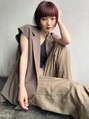 切りっぱなしボブに顔周りのアクセントになるフェイスレイヤーをプラス◎深みのあるレッドブラウンは繰り返し色味を重ねることでブリーチなしでここまでお色味出せます♪