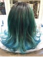 ハイライトを細かくいれて毛先はブリーチでなるべく白っぽくなるまで抜いてからミドリ~アオをグラデーションでのせる♪