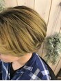 根元はあえて黒いまま。毛先に向かってグラデーションでyellowを。少しくすませたyellowが肌馴染みがいい。デザインカラーお色味取り揃えております。お気軽にお問い合わせくださいませ。