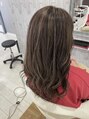 細かくハイライトをたっぷり入れた立体感のあるカラー。白髪染めを繰り返していても、しっかり明るく出来ます。白髪の気になるところに明るめのハイライトを入れることで馴染みやすくしています。
