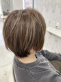ハイライトをたっぷり入れてからクリームベージュで染め上げた柔らかい上品なショート。退色した後もハイライトが効いていて立体感のあるおしゃれなカラーを長く楽しめます。白髪ぼかししたい方もおすすめです。