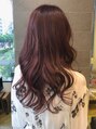 動きの出やすい軽やかなロングに、しっかり濃いめのベリー系カラー。暗めだけど光があたるとふわっとピンクで愛されヘアー。少し透け感のある前髪でさらに柔らかく。
