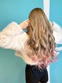 根元は赤みを抑えたアッシュ、毛先に淡いベビーピンクを入れたデザインカラー。しっぽのようにふんわり色づく、透明感たっぷりのグラデーションスタイルです。