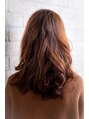 キャメルベージュでツヤを出し、髪の柔らかさを出してみました。色の持ちが良くなるバイオレットを少しだけ入れるのもポイントです。更にパーマで動きを出したらウェーブ×ニットの冬スタイルが完成!ふわふわのニットに合わせてほしいスタイルです!