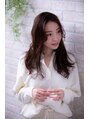 思わず触れたくなるようなやわらかい質感がポイント。カラーはシースルーアッシュでよりソフトな印象にレイヤー感をしっかりと出しながら、毛先はほどよく重さを残して今っぽさをセンターパートの流しバングで大人なムード