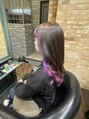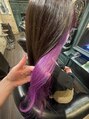 パープルピンク インナーカラー 韓国ヘア ロング