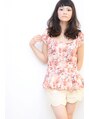 強すぎず弱すぎずのナチュラルのカールで柔らかさ、女子力アップ↑のスタイルです☆短めパッツンのバングもポイントです♪1度挑戦してみては・・・☆