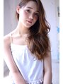 人気のイノセントカラ―で黄色味と赤味を消して自然な透け感を出す*前髪からレイヤーをつなげて全体を大きく巻いた後ワックスとオイルを混ぜてツヤ感をプラス♪
