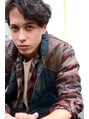 グレーアッシュの落ち着いた色味とアンニュイな雰囲気をつくるwave permで大人の男子。ハーフアップバングでもお洒落に決まる♪