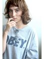 切りっぱなしのブラントカットでカジュアルマッシュなティストを加えた大人可愛いボブに。柔らかい質感になるベージュ系のカラーも◎
