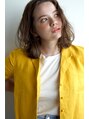 かきあげた前髪がアンニュイなミディアムスタイル。光にあたって透ける透明感のあるカラーを
