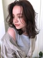 根元からのゆるいニュアンスウェーブがグランジ感のあるミディアムスタイル。重すぎないAラインシルエットにトップだけレイヤーを。ストロークカットで質感を柔らかく。