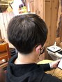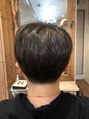 襟足を少し刈り上げ、耳まわりも短くすっきり切っていますが、トップは長めに丸みを持たせているので、全体的に柔らかい雰囲気を出していますやりすぎない刈り上げは、セットをとても楽にしてくれます!
