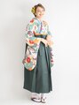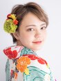 お着物の雰囲気に合わせて、髪飾りをチョイスしました!カラフルなお着物なので、ヘアも毛先を少し巻いてカジュアル感を♪♪