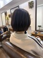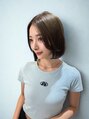 ストンと重くなりすぎないように表面にだけレイヤーを入れたレイヤーボブで、ふわっとした動きと下にボリュームがくるシルエットにしました。ハチの位置より下に重心を持ってくることで、自然と視線が下がり、張りが目立ちにくくなります!