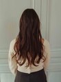 毛先にレイヤーが入ったロングスタイル。巻いた時に動きがでて重く見えないように。顔まわりはおくれ毛をつくって、もみあげは結んだ時や耳にかけた時に巻いてちょうどいい長さにカット。カラーはやわらかいベージュで透明感のある仕上がりに。