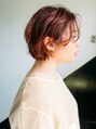 首元をスッキリしたショートボブスタイルです。後ろのシルエットが綺麗になるようにプツッと切っておりその上に動きが出るよう、レイヤーを少し入れています!前髪も動きが出るよう、無造作な感じでスタイリングしています。
