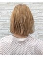 【ブリーチは1~2回必須です】揃えたパツっとボブに!オイルだけでまとまり、毛先にも動きがつくように毛量調整してます。薄めのカラー剤であえて黄味は残したブロンドヘアに◎